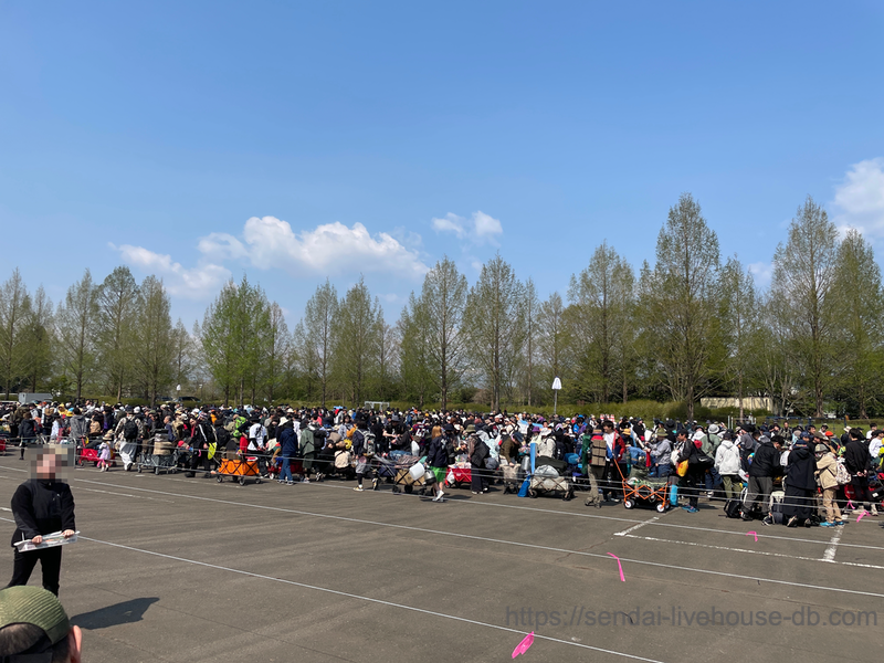 8時過ぎにはついたのですが大行列!アウトドアワゴンにキャンプギアを山積みにして開場を待つこの時間、「いよいよ始まるぞ!」というワクワク感が高まります。